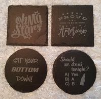 4" Slate Coasters in round or square shapes with foam feet.